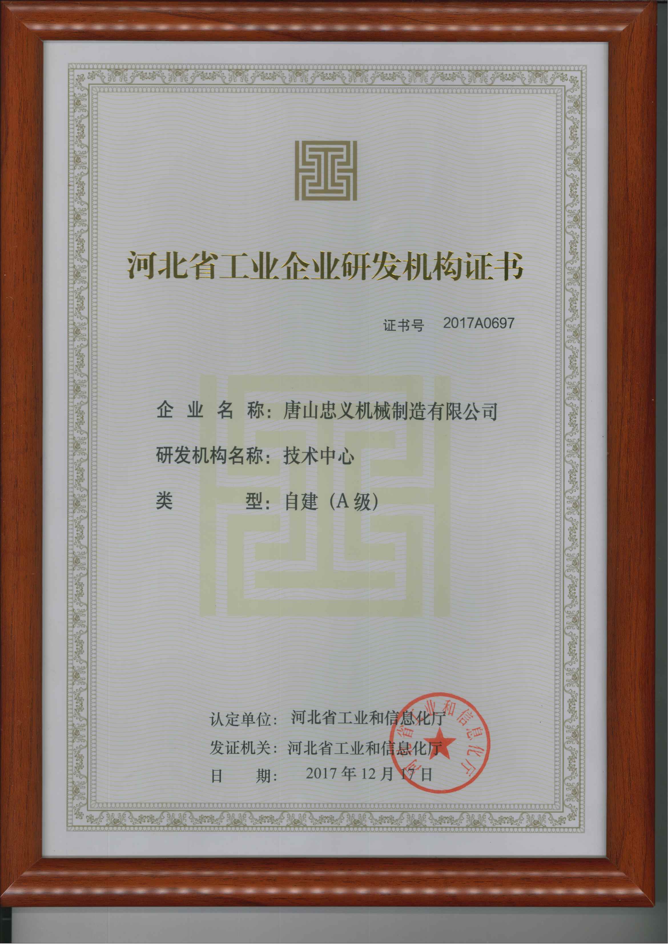 河北省工業(yè)企業(yè)研發(fā)機構證書彩色原版 發(fā)布時間:2025-08-18 點擊: 306 上一條: 河北省專精特新中小企業(yè) 下一條: 河北省科技型中小企業(yè)證書(新)